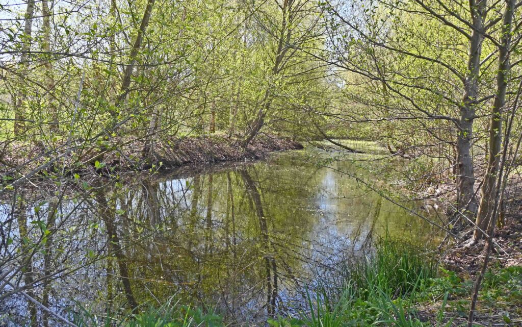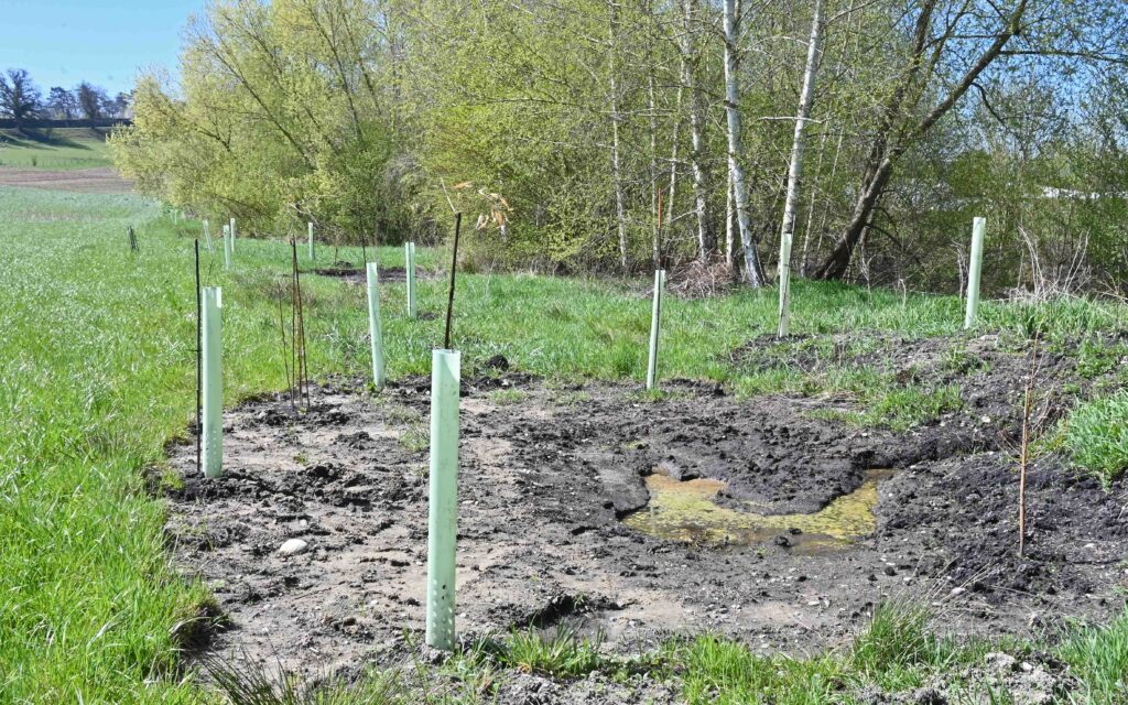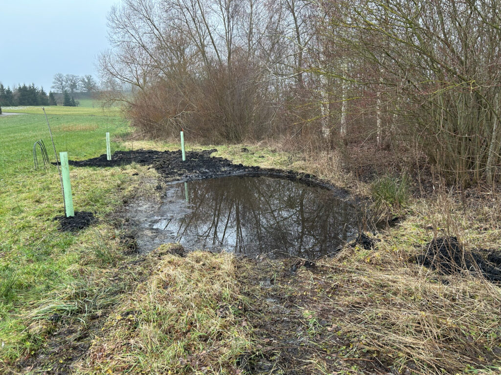 Auf Initiative der Stiftung wird die Biolandschaft Champ-Raclé weiterentwickelt. Neu gestaltete Teiche verbessern Amphibien und vielen anderen Lebewesen ihren Lebensraum.